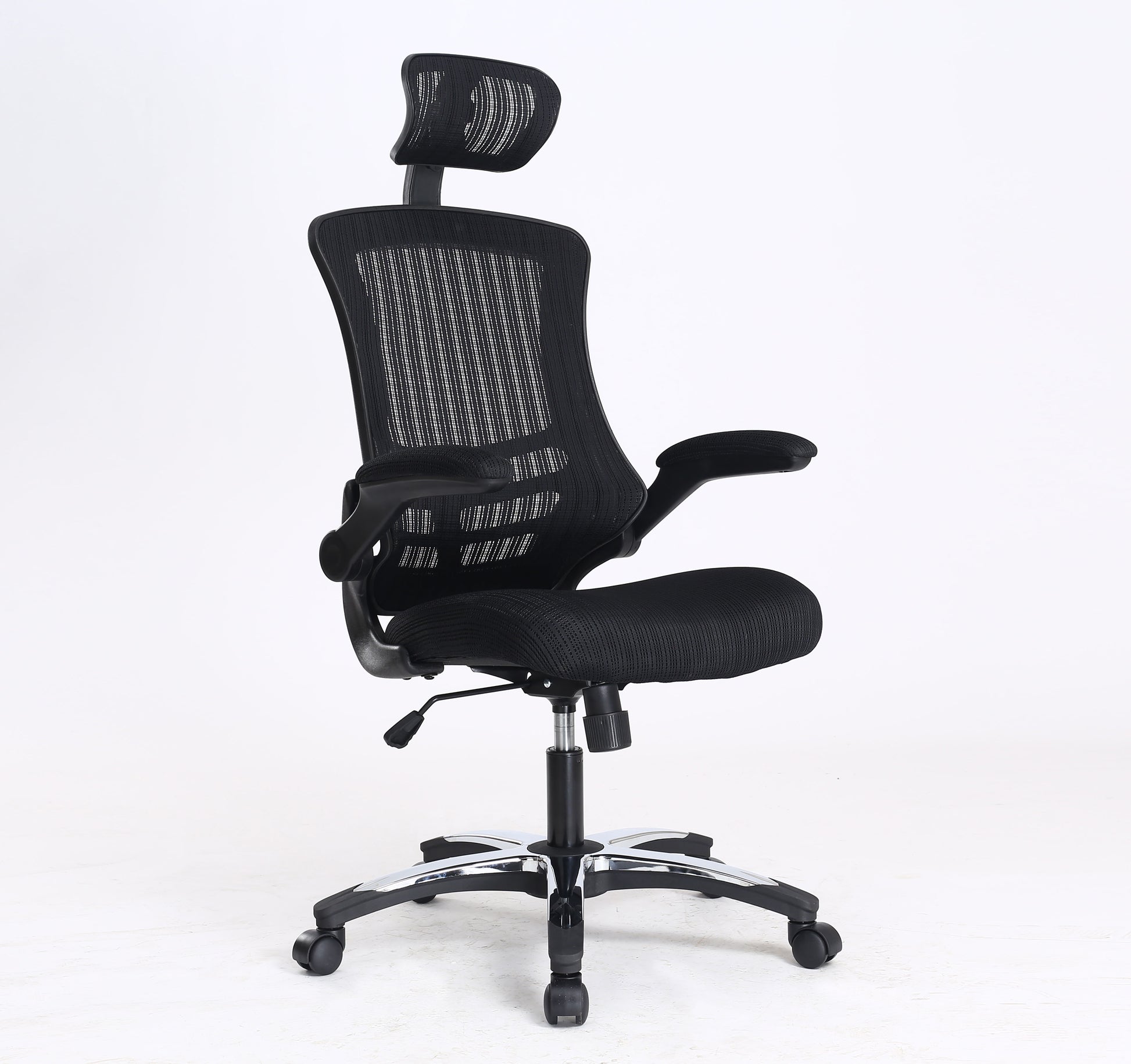 • 90° flip-up arms allowing the chair to slide neatly under your desk