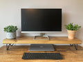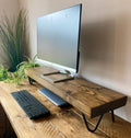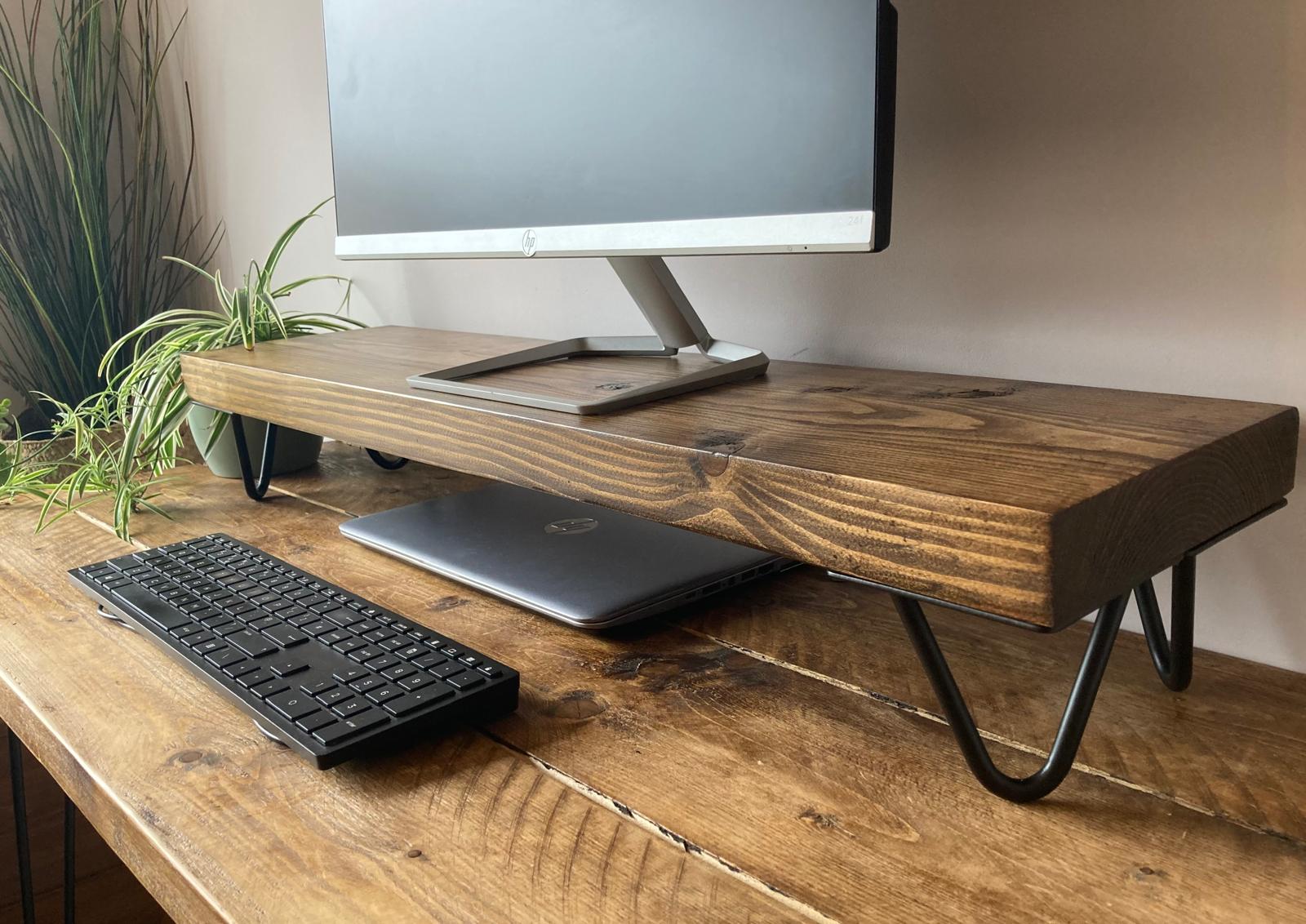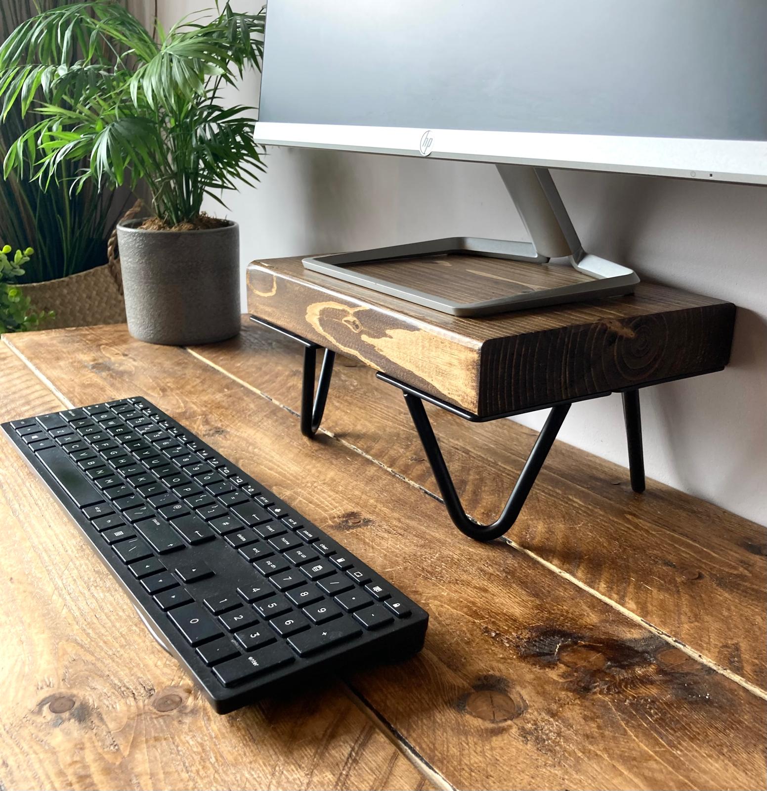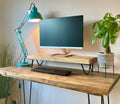 Each hairpin monitor stand is handmade to order in our UK workshop using FSC-certified, kiln-dried Redwood Pine - a durable, high-grade timber chosen for its strength, stability, and natural beauty. The wood is precisely cut, carefully sanded, and finished with a premium wax blend that enriches the grain and protects the surface for years to come. With solid 10mm steel legs and a robust 4.5cm thick top, it’s built to support multiple monitors, speakers, and other desktop equipment with no issue. Strong, refined, and made to last. Delivered fully assembled.