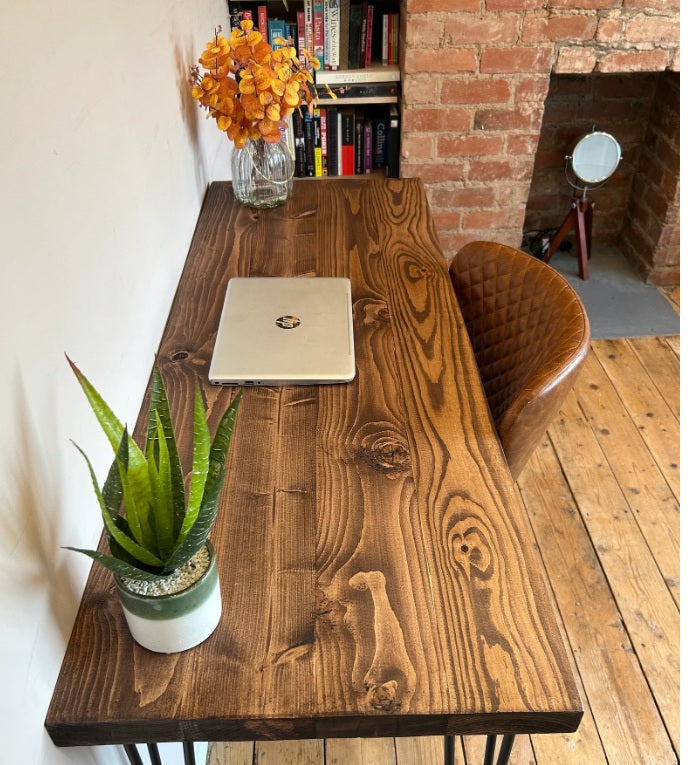 This express desk is made using FSC-certified Redwood Pine - a durable, high-grade timber chosen for its strength and natural beauty. We use clean, kiln-dried solid pine, professionally prepared to give a smoother, more refined finish while still retaining its natural character. Unlike reclaimed scaffold boards, it offers consistent quality, a cleaner look, and long-term stability indoors.